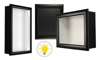 Are you looking for a large shadow box display for your products, awards, memorabilia, or collectibles? Our SwingFrame collection of metal frame and wood framed wall shadow box display cases come in numerous sizes and depths. The patented swing open case system is just one of the many unique features of these indoor display cases that you won't find in other hinged shadow boxes. This collection will easily accommodate your project needs, and should it not, we can build custom shadow boxes for your specific size and style requirements.
