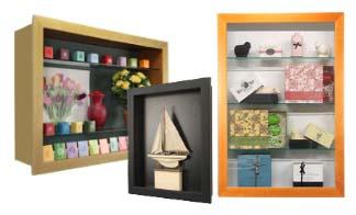 All five styles are offered with optional shelving to display an assortment of dimensional items and objects. These come in various sizes, from 16x20 to 45x93, with depths of 3" to 16". Depending on the size of your case, you may add up to six adjustable glass shelves. If you opt for a corkboard backer, we offer six optional fabric-covered cork board colors to give your shadow box a personal touch.