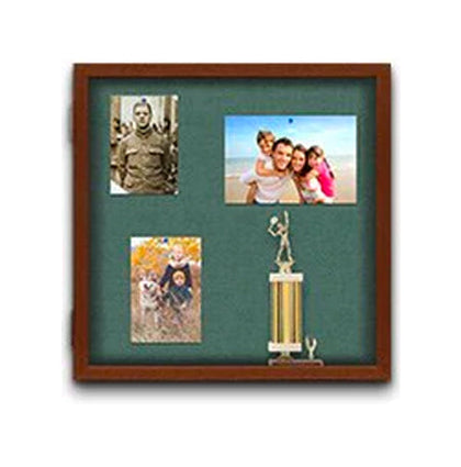 Custom shadow box sizes, custom shadow box frames, deep shadow box sizes, lit shadow boxes, side locks for security, cork board backer, fabric backer, alternate laminate backer, and additional shelves